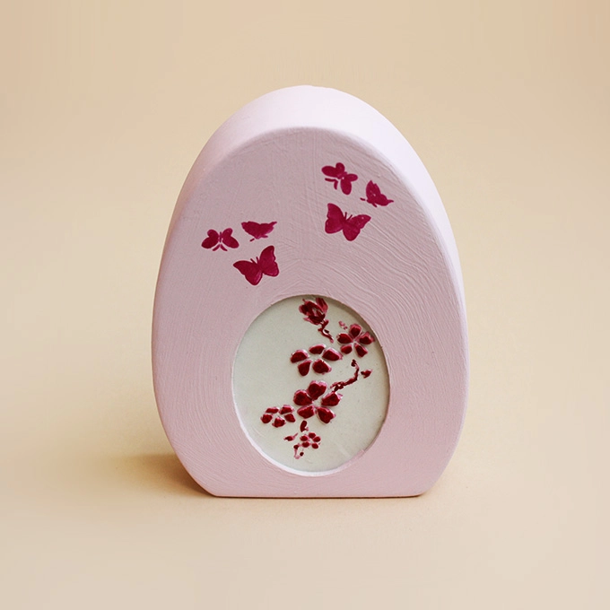 Dieses individuelle Ei ist aus Gießpulver »Raysin 200« mit der Reliefeinlage »Blütenranke« ausgegossen, in rosa bemalt und bestempelt. Es ist beispielsweise vor einem Osterstrauch eine ideale Dekoration. Handgefertigt, individuell und in seiner Art einzigartig.