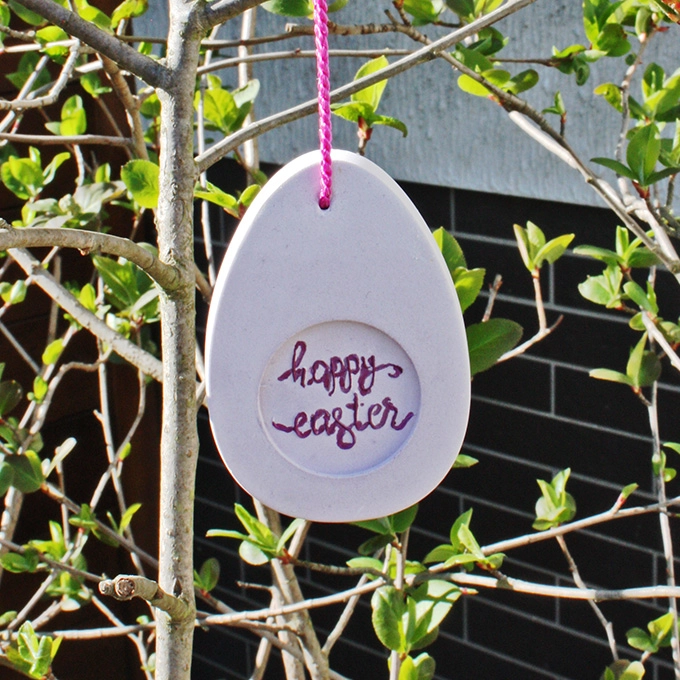 Raysinanhänger Ei handgefertigt Maße: Höhe 7 cm Raysin 200, Reliefeinlage »Happy Easter« bemalt, Kordel, in verschiedenen Farben erhältlich