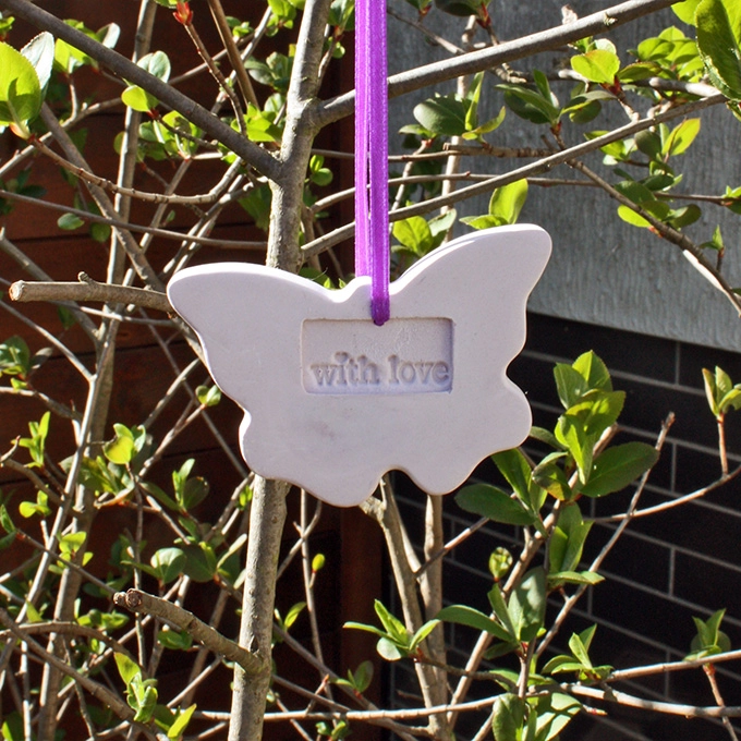 Raysinanhänger Schmettering handgefertigt Maße: Breite 7,5 cm Raysin 200, Reliefeinlage »with love«, Satinband, in verschiedenen Farben erhältlich