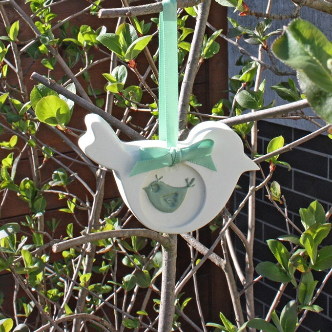 Raysinanhänger Vogel handgefertigt Maße: Breite 7,5 cm Raysin 200, Reliefeinlage »Vogel« bemalt, Satinband, Schleife, in verschiedenen Farben erhältlich