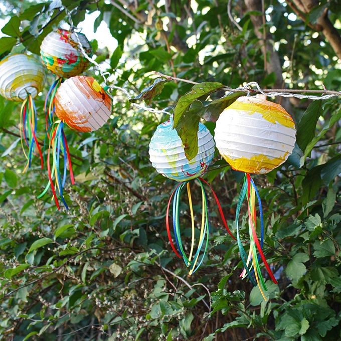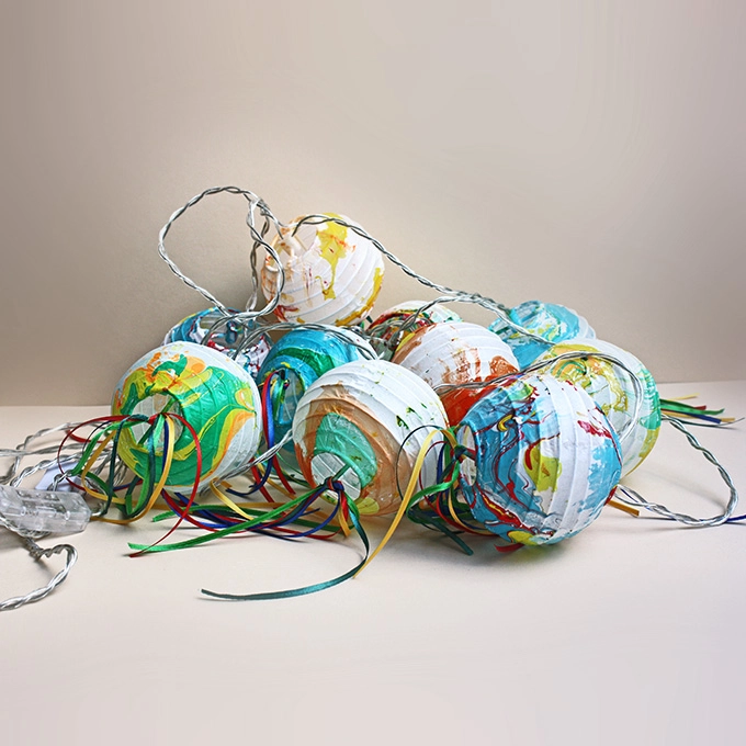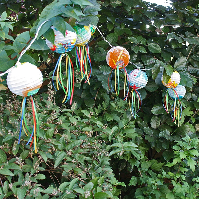 Diese sommerliche Lichterkette »Lampion« ist handgefertigt. Die 10 Papier-Lampions haben je einen Durchmesser von 10 cm, sind marmoriert und mit Satinbändern verziert. Ein hübscher Hingucker für Ihre Gartenlaube oder Balkon (nur im geschützten Bereich).