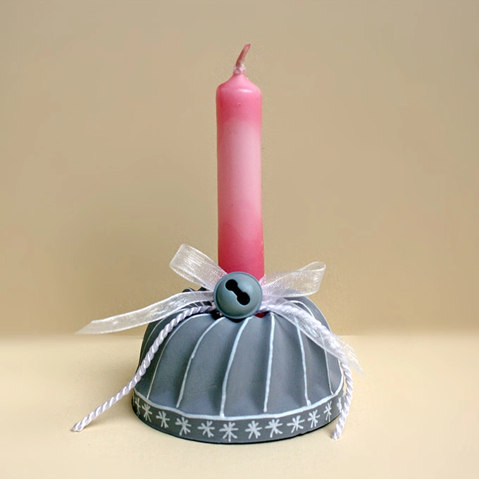 Raysin Gießpulver, Kreidefarbe grau/weiß, Kordel weiß, Organzaband weiß, Glocke, Baumkerze rosa