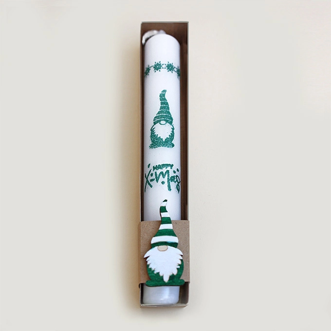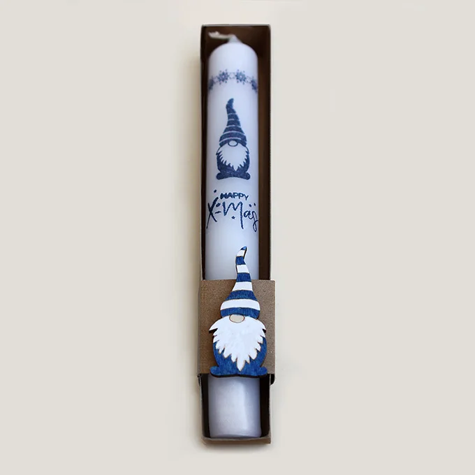 Diese hübsche Stabkerze ist ein tolles Mitbringsel ob zum Adventkaffee, als Tischdekoration oder auch nur so. Die Kerze ist mit einer Stempeltransfermethode gestaltet und in einer von Hand gefertigten Schachtel verpackt, die mit einem Holzwichtel verziert ist. Dieses Set ist in den Farben rot, blau und grün erhältlich