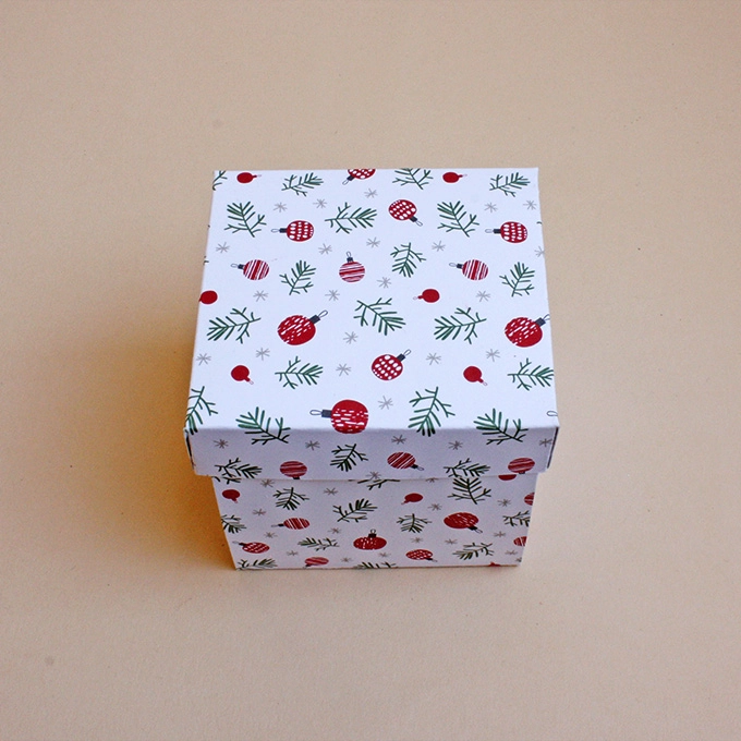 Geschenkbox z.B. für Gutscheine, Motivkarton Weihnachtskugeln, LED-Baum, Stempel