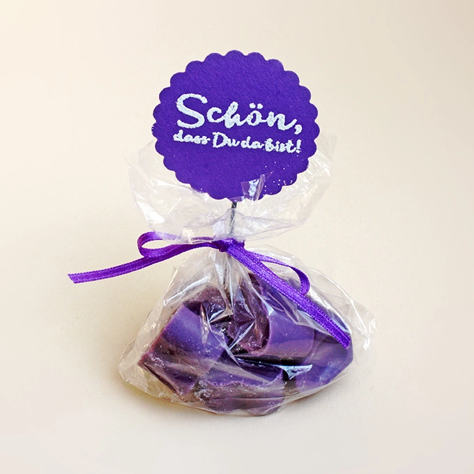 Klarsichttüte mit Seifenherzen und Schild, handgefertigt, Klarsichtbeutel mit 6 Seifenherzen mit Rosenduft, Schild, Satinband